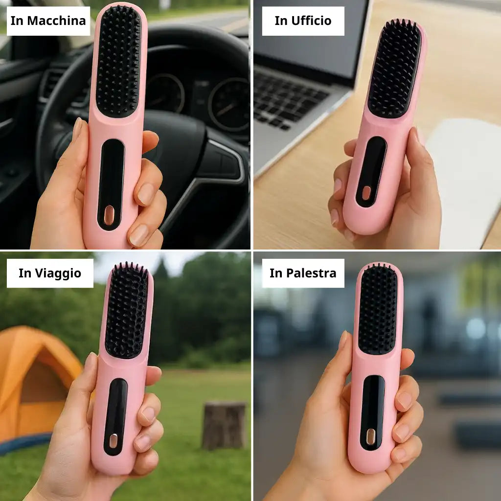 Tra treni e call al volo, la tengo nel trolley. È leggera, cordless e la ricarico con il power bank. Look curato in un attimo.